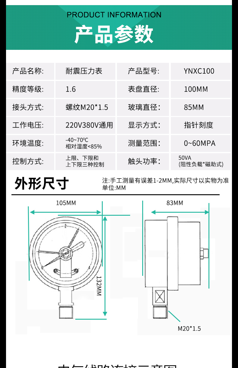 YNXC-100耐震磁助式電接點壓力表