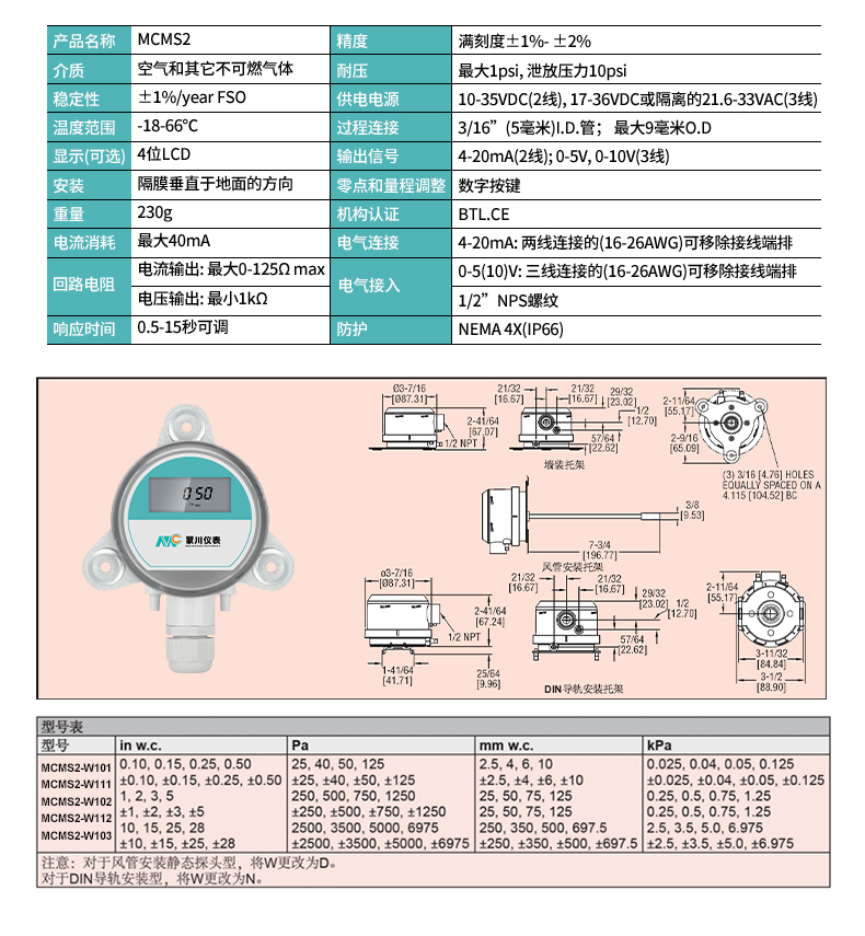 MC微差壓變送器